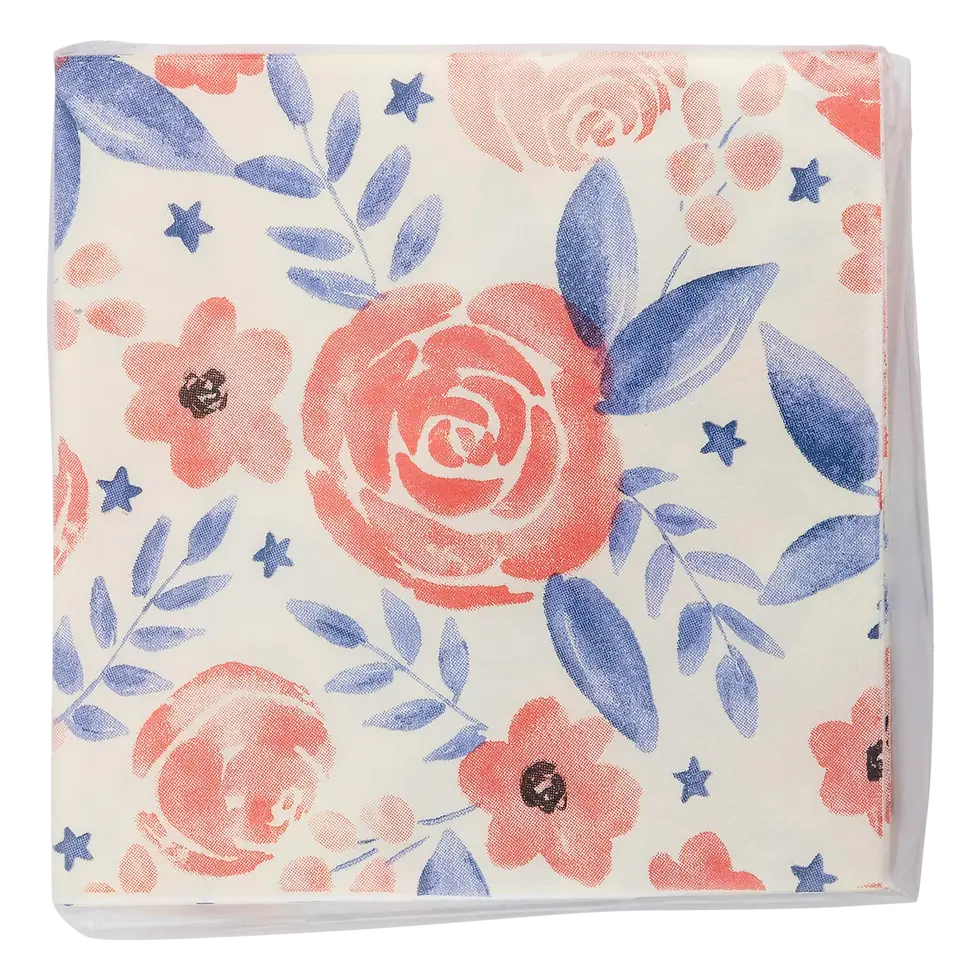 Red and Blue Watercolor Floral Paper Cocktail Napkin